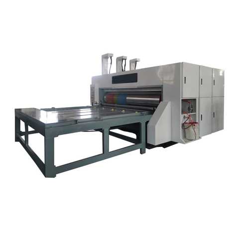 チェーンフィード段ボールスロッターと折り目付き4色フレキソ印刷機
